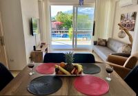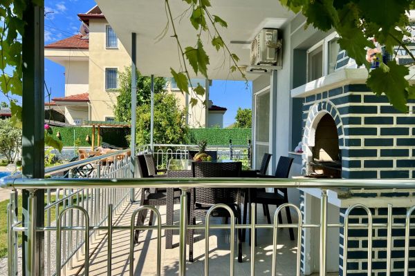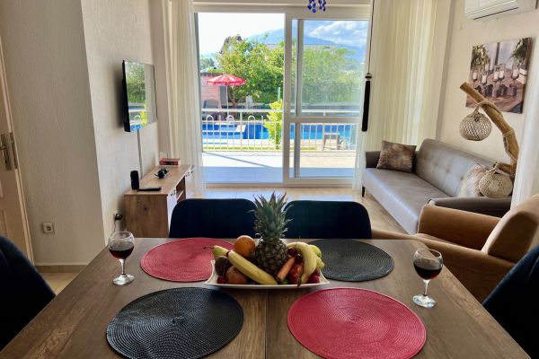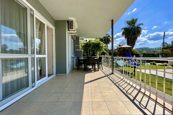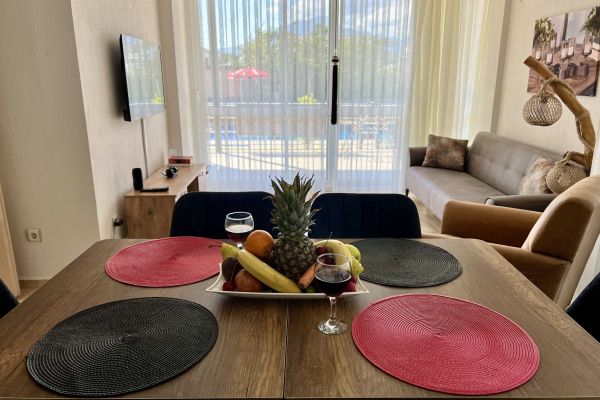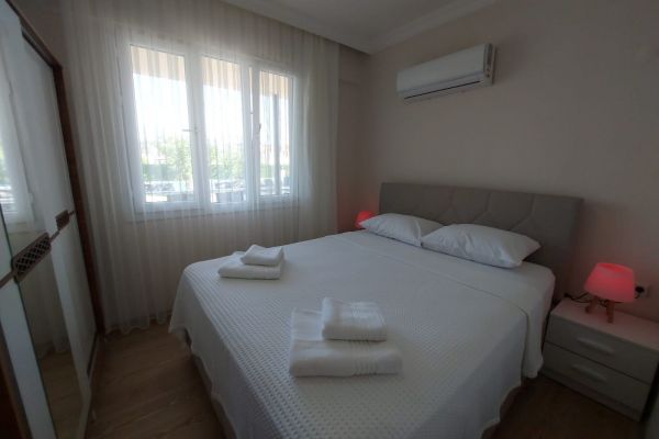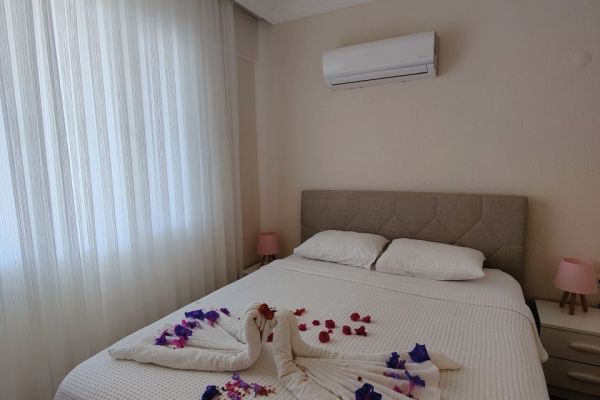 Bu ferah 3+1 Apart Deniz sizleri modern yaşamın konforuyla buluşturuyor. Geniş salonunda günün yorgunluğunu atarken, aydınlık ve kullanışlı odalarıyla huzurlu bir yaşam sunuyor. Ankastre beyaz eşyaların bulunduğu mutfakta lezzetli yemekler hazırlayabilirsiniz. Her biri özenle dekore edilmiş olan 2 yatak odalı,1 çocuk odası ve 1 oturma odalı odalarımız, hem ailenizle hem de arkadaşlarınızla keyifli bir tatil geçirmeniz için geniş bir alan sunar. Oturma odasının ferah yapısı, rahat bir oturma grubu ve böylece dinlenirken keyifli anlar yaşayabilirsiniz. Balkonundan açılan manzara, size her sabah uyanırken huzur verirken, akşamları ise rüya gibi bir atmosfer yaratır. Havuzun serin sularının yanı başınızda olduğu bu balkonda, doğanın tadını çıkarabilir, stres atabilirsiniz.