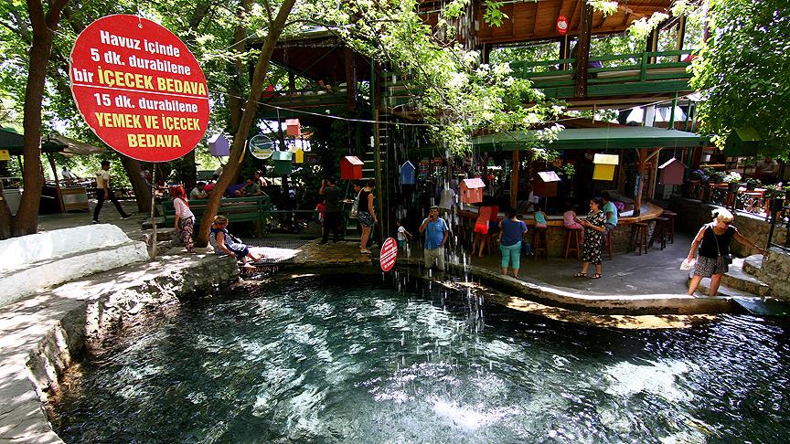 Yakapark'ın içinde yer alan şelale havuzu gerçekten serinletici bir deneyim sunmaktadır. Ancak su oldukça soğuk olduğundan dikkatli olmanızda fayda var. Havuzun etrafında bulunan tabelada, havuzda belirli bir süre kalana ücretsiz içecek veya yiyecek sunulduğunu belirten ilginç bir teklif yer almaktadır.