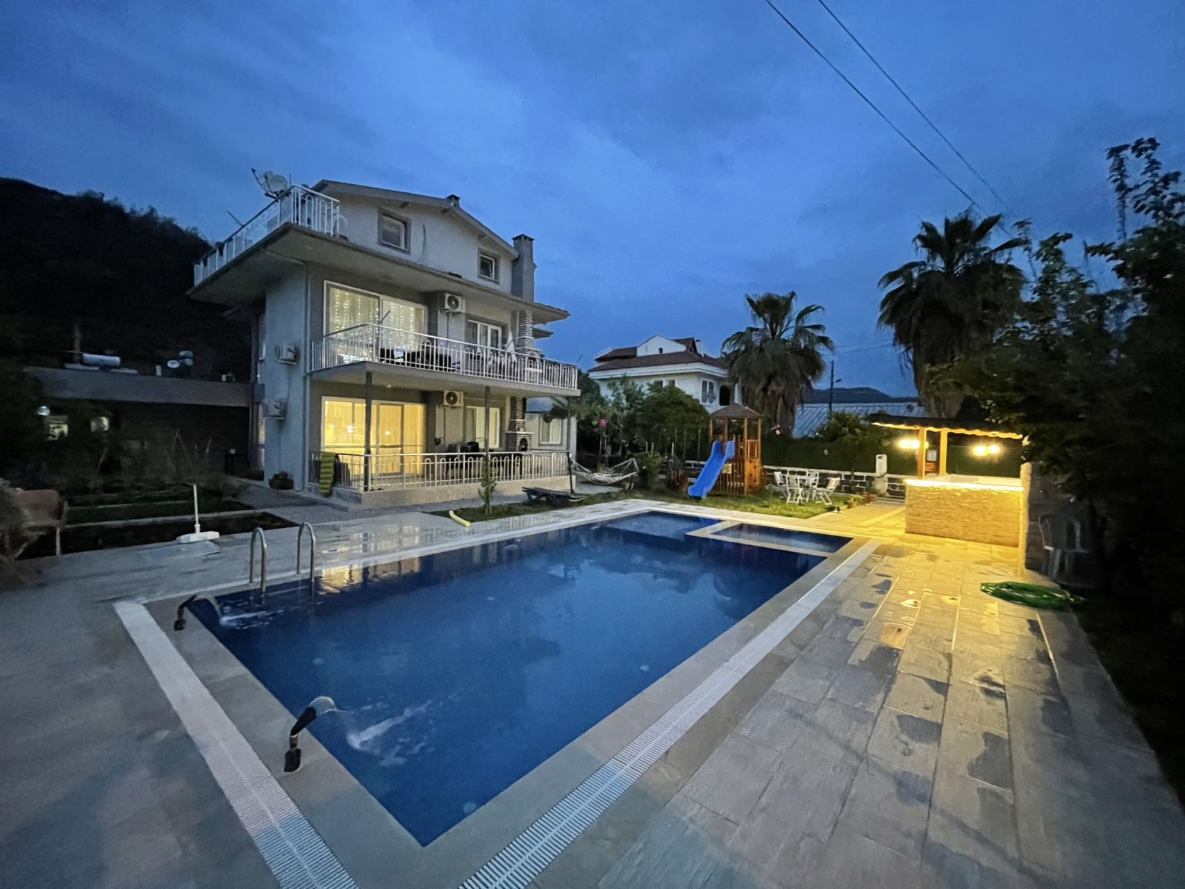Farklı Derinlik Seviyeleri: Havuzumuzun farklı derinlik seviyeleri, hem yüzme becerisi olan misafirlerimizin keyifli zaman geçirmesine hem de suyun keyfini sürmek isteyenlerin rahatça dinlenmesine olanak tanır.