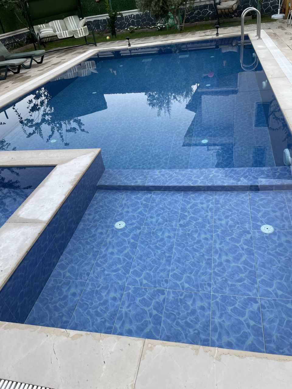 Büyüleyici Tasarım: Havuzumuz zarif tasarımıyla göz kamaştırıyor. Doğal taşların ve bitki örtüsünün kullanıldığı tasarımımız, çevreyle uyumlu bir atmosfer yaratıyor.